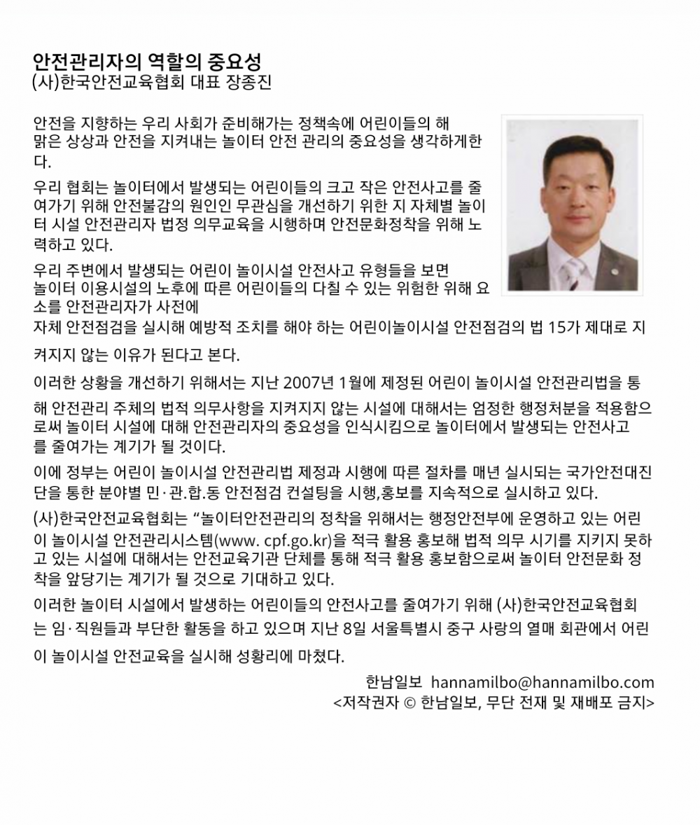 그역할을 실현하기위해서는 안전을 바라보는 관념을 정립해야된다고 봅니다.